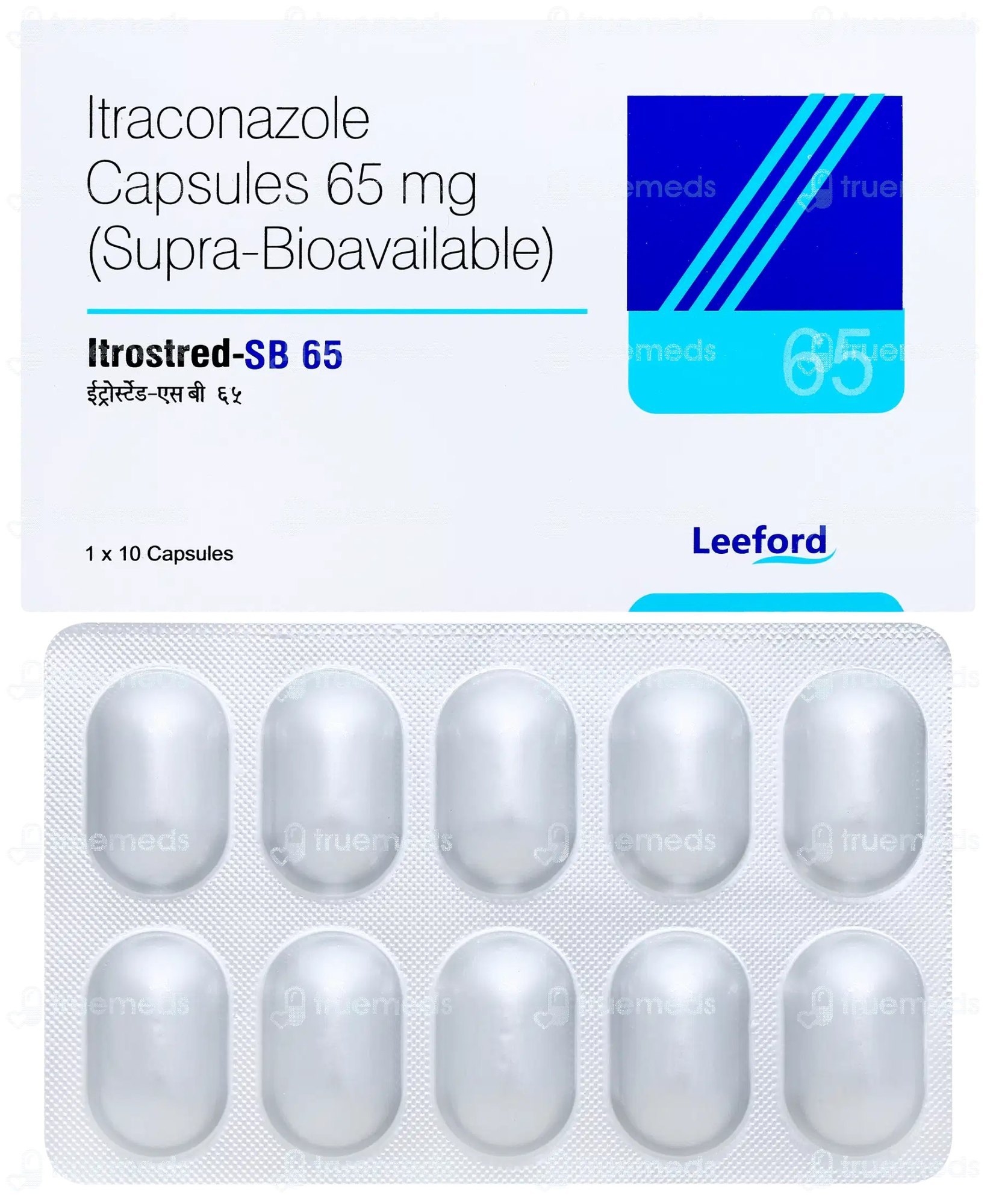 Take Itrostred SB 65mg Capsule orally with a full glass of water, preferably after meals. Swallow the capsule whole; do not crush or chew. Follow your doctor’s dosage and schedule carefully, and complete the full course even if symptoms improve early.