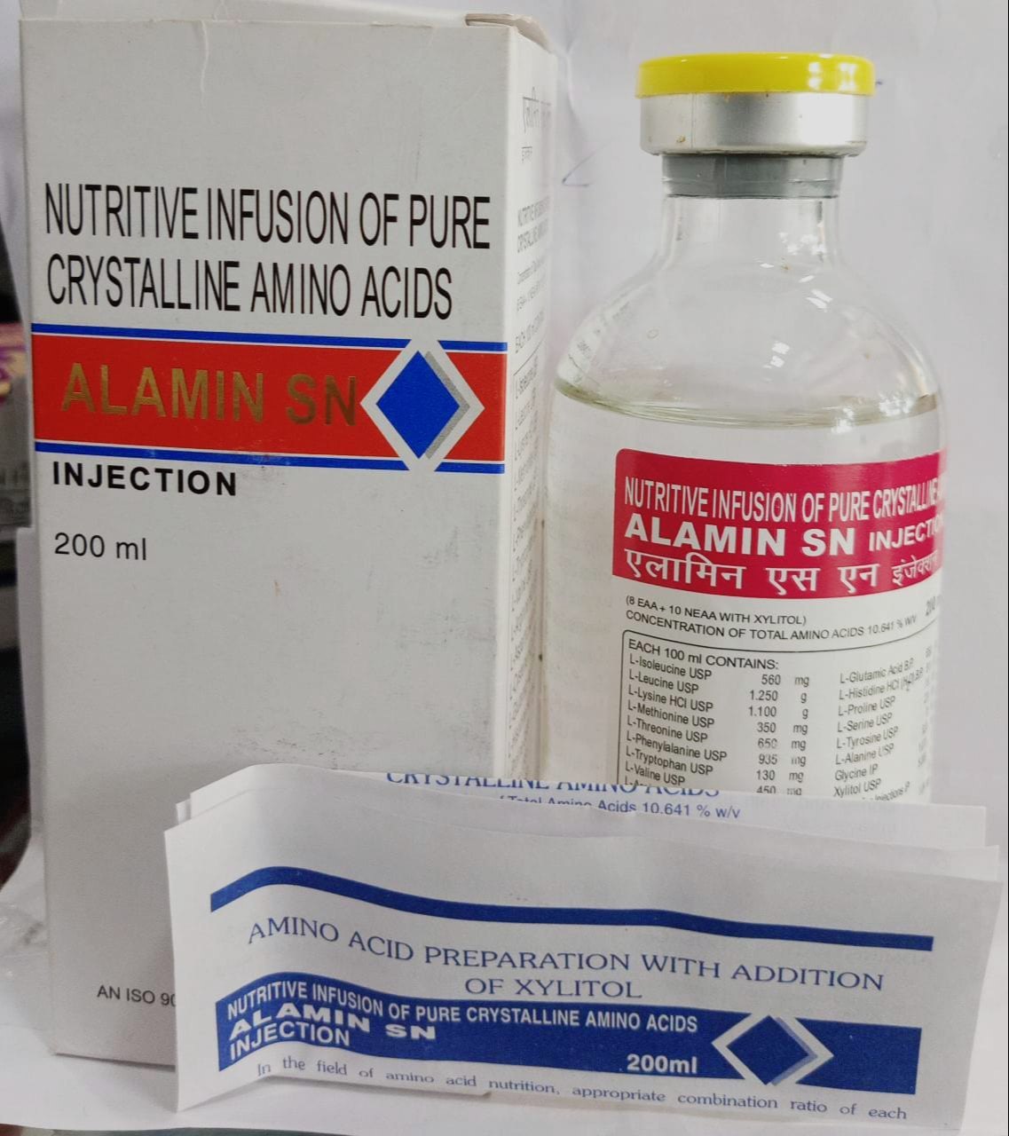 Alamin SN Infusion, manufactured by Albert David Ltd, is a sterile intravenous (IV) infusion containing essential and non-essential amino acids. It is used for nutritional support in patients who cannot take food orally or require additional amino acid supplementation. It plays an important role in protein synthesis, tissue repair, muscle recovery, and energy metabolism during critical illness, surgery, trauma, or malnutrition.