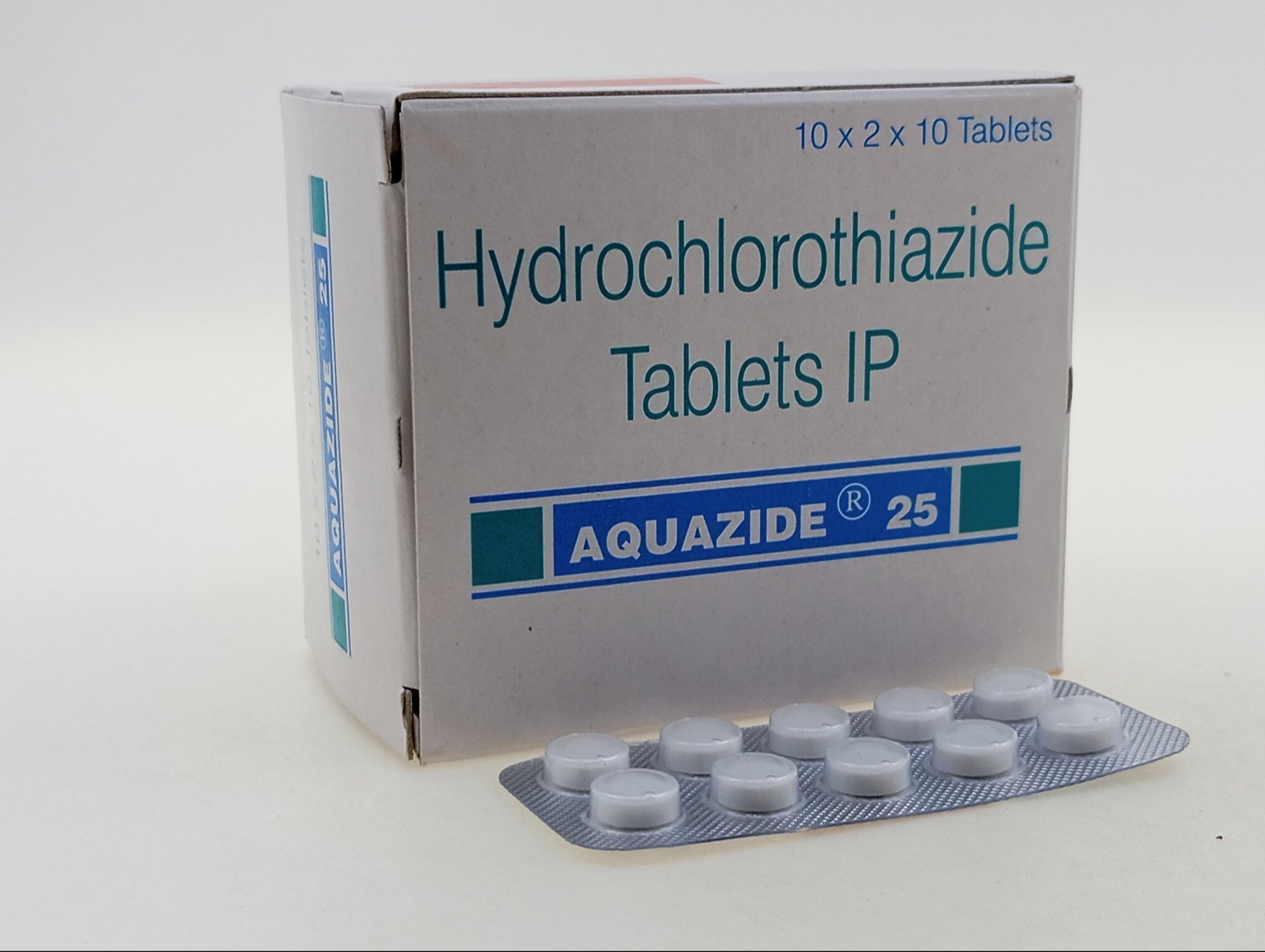 Aquazide 25 Tablet is a prescription medicine manufactured by Sun Pharmaceutical Industries Ltd. It contains Hydrochlorothiazide (25mg), a thiazide diuretic that helps reduce excess fluid in the body and lower blood pressure.
