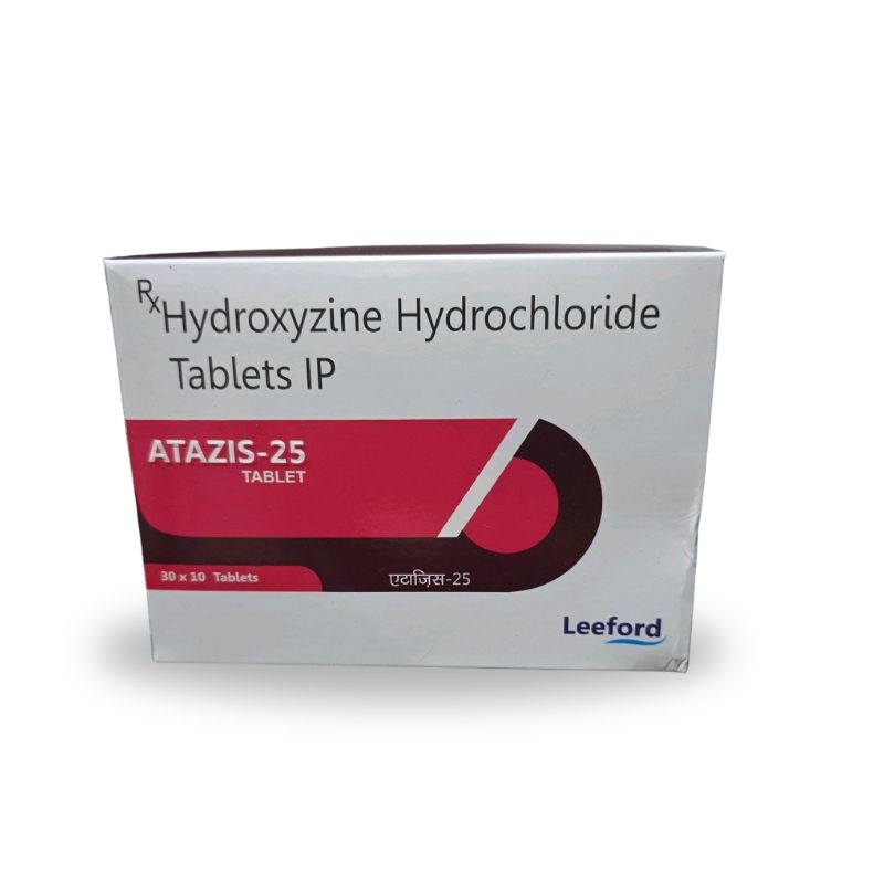 Atazis-25 Tablet is an antihistamine used for relief from moderate to severe allergic symptoms, itching, skin allergies, and also occasionally for short-term anxiety or as a sedative.