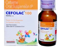Cefolac 100 Oral Suspension is an antibiotic containing Cefixime, a third-generation cephalosporin. It is used to treat bacterial infections by inhibiting bacterial cell wall synthesis, effectively stopping bacterial growth.