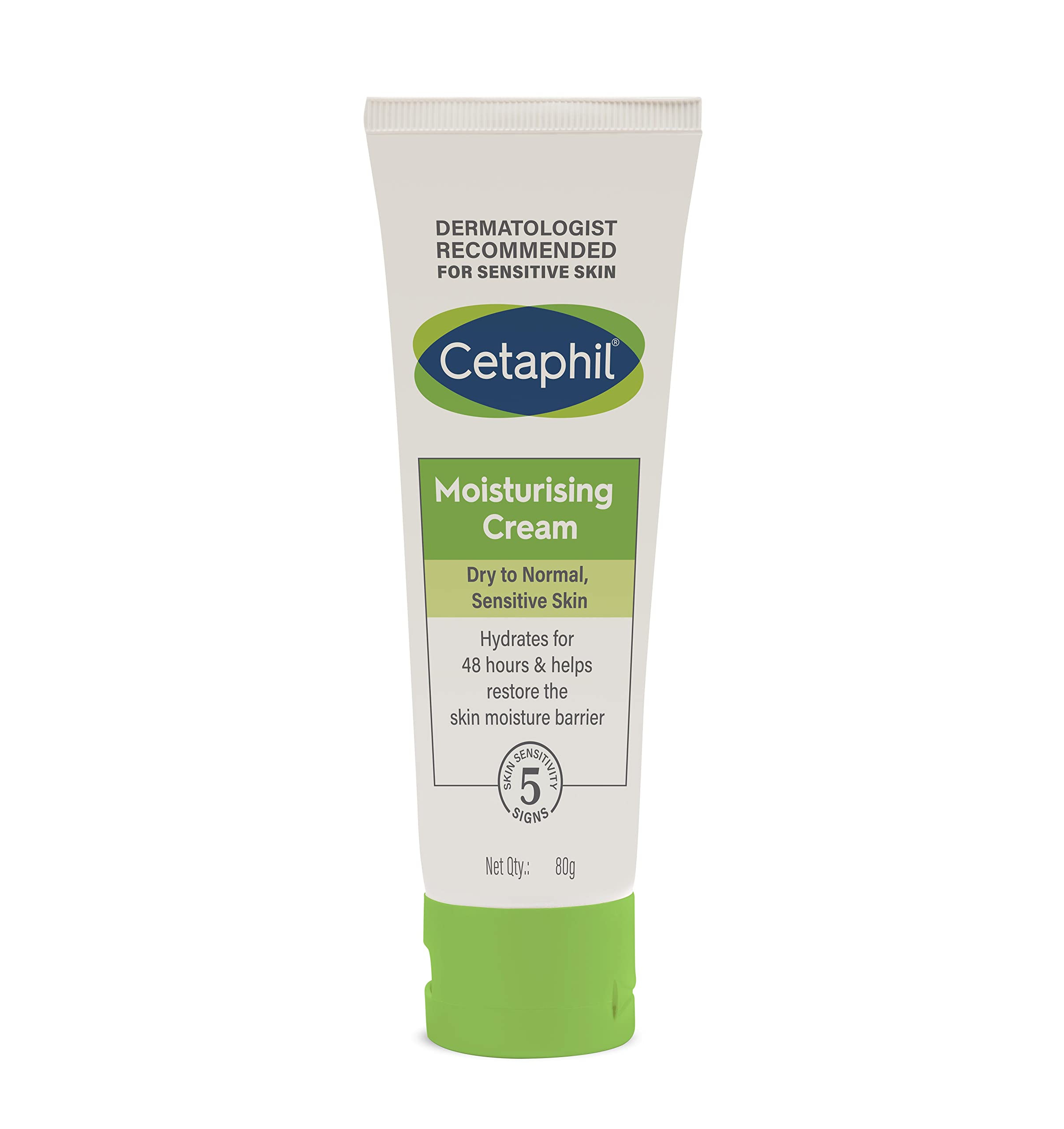 The formula contains Glycerin, Sweet Almond Oil, and Vitamin E, which help restore the skin’s natural protective barrier. It is fragrance-free, paraben-free, non-comedogenic, and hypoallergenic, making it ideal for people with sensitive or allergy-prone skin. Cetaphil Moisturising Cream soothes dryness, irritation, and rough patches without clogging pores or leaving a greasy residue.