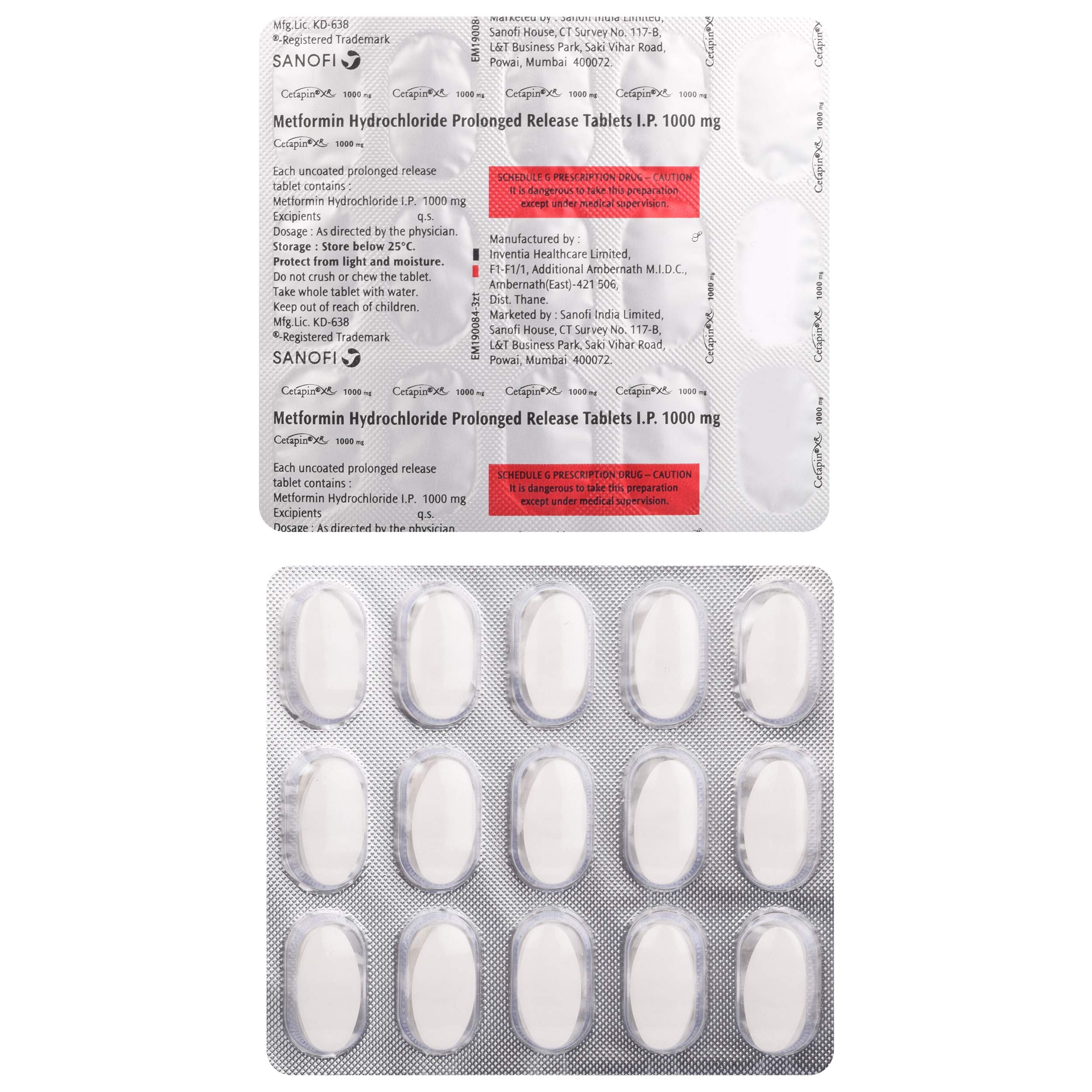 Cetapin XR 1000mg Tablet is an extended-release formulation of Metformin used to manage type 2 diabetes mellitus. It helps control blood sugar levels by reducing glucose production in the liver and improving insulin sensitivity in the body.