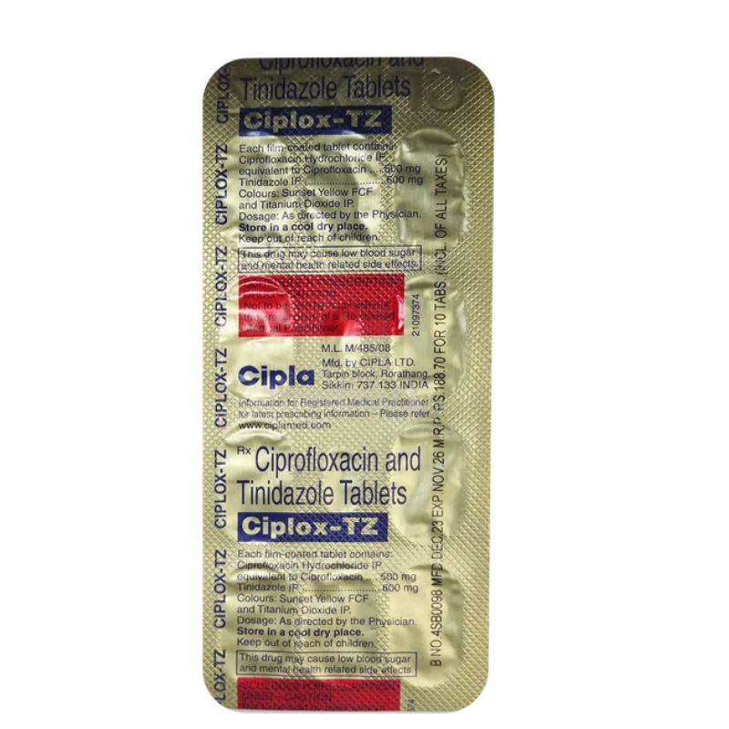 Salt: Ciprofloxacin (500mg) + Tinidazole (600mg)