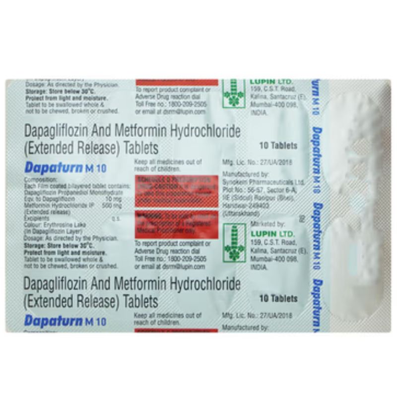 Dapaturn M 10 Tablet ER is a combination antidiabetic medicine used to manage type 2 diabetes mellitus. It helps control blood sugar levels by improving the body’s response to insulin, reducing sugar production in the liver, and helping the kidneys remove excess sugar through urine.