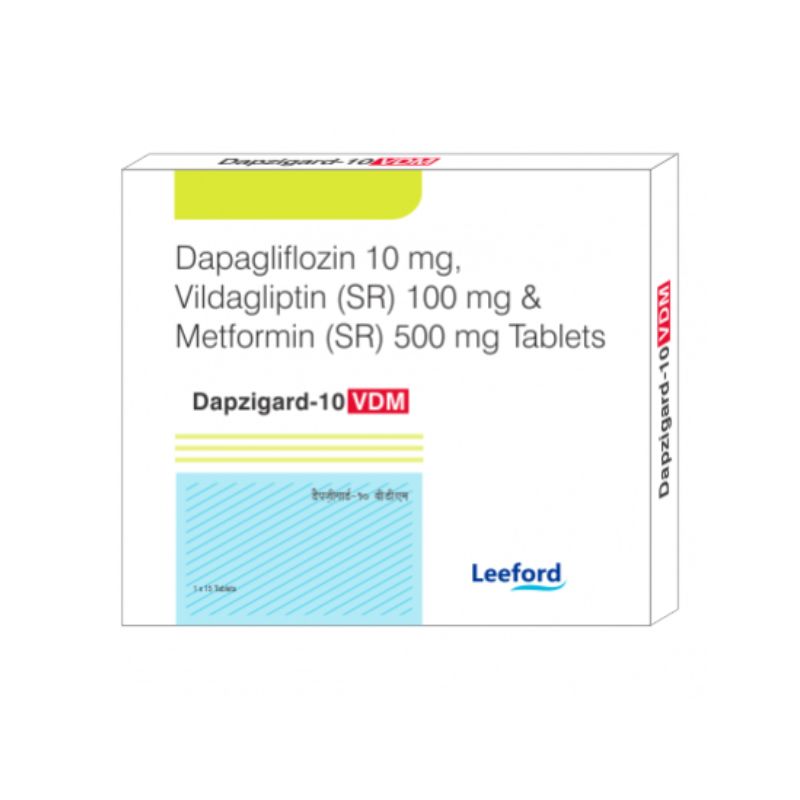 DAPZIGARD-10 VDM Tablet is a triple fixed-dose oral antidiabetic for adults with type 2 diabetes mellitus, especially when control is insufficient with single or dual agents.