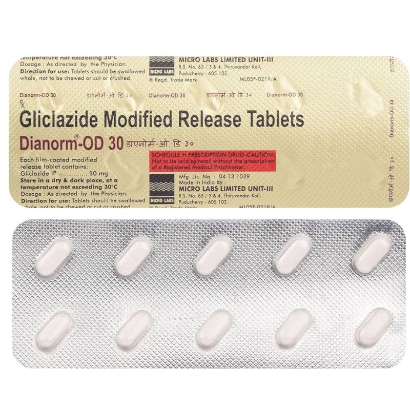 Take Dianorm-OD 30 Tablet MR before or with breakfast, as directed by your doctor. Swallow the tablet whole with a glass of water. It is designed for modified release, so it provides long-acting control over blood sugar levels. Follow a healthy diet and regular exercise plan alongside the medicine. Regular monitoring of blood sugar is essential to track progress and adjust dosage if necessary.