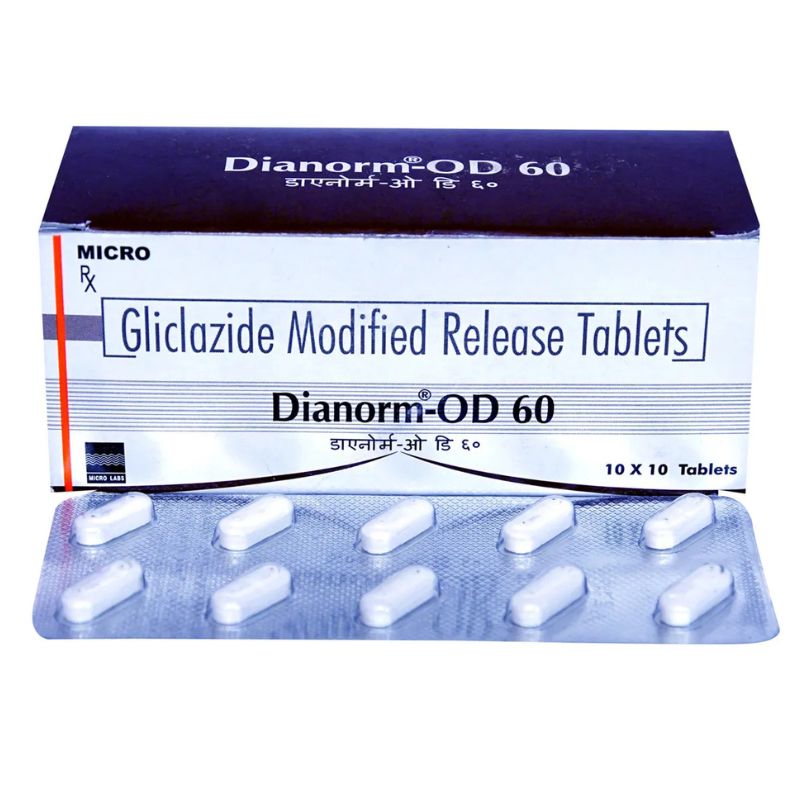 The term “OD” (Once Daily) and “MR” (Modified Release) means the tablet is designed to release the medicine slowly and evenly throughout the day, helping maintain stable blood sugar levels with a single daily dose. Regular use of Dianorm-OD 60 helps prevent diabetes-related complications such as nerve damage, kidney disease, blindness, heart attack, and stroke.