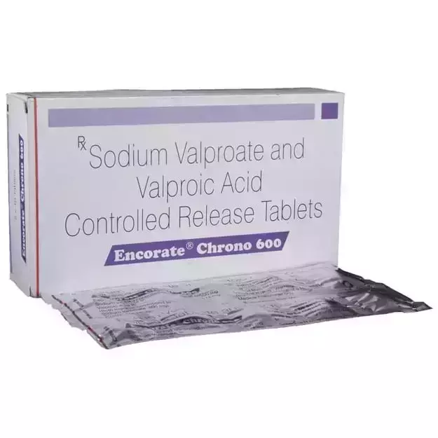 Encorate Chrono 600 Tablet CR is a prescription medicine combining Sodium Valproate and Valproic Acid in a controlled-release formulation. This helps maintain steady blood levels for effective management of epilepsy, bipolar disorder, and migraine prevention. The medicine stabilizes abnormal electrical activity in the brain, reducing seizure frequency and supporting mood regulation.