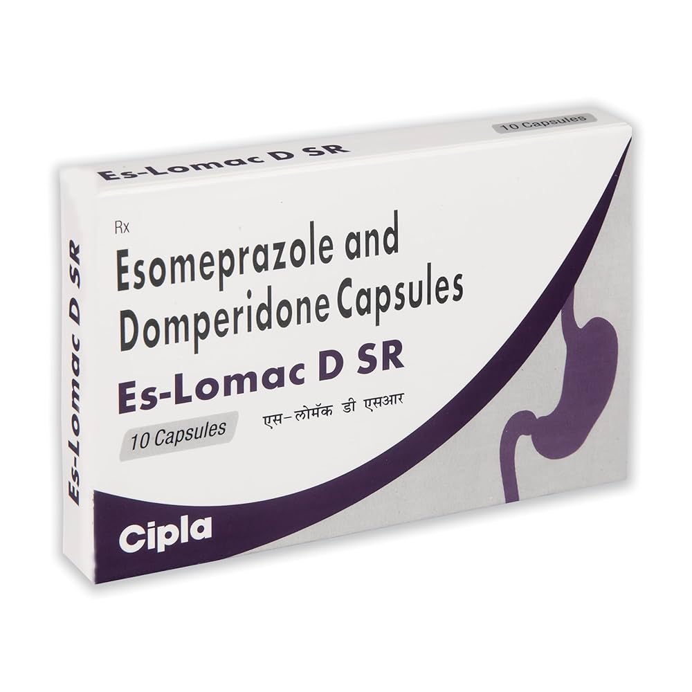 ES-Lomac DSR Capsule is a combination medication used to treat acid-related gastrointestinal disorders. It contains Esomeprazole, a proton pump inhibitor that reduces stomach acid production, and Domperidone, a prokinetic agent that helps improve stomach emptying and reduces nausea. This dual-action formulation provides fast and effective relief from symptoms of gastroesophageal reflux disease (GERD), acidity, heartburn, and nausea associated with delayed gastric emptying.