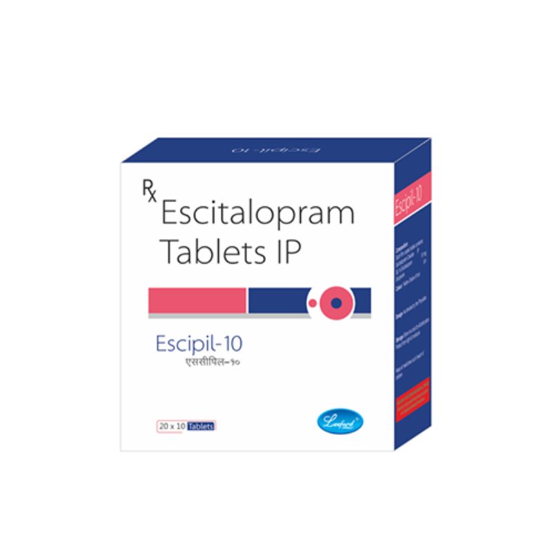 ESCIPIL-10 contains Escitalopram 10 mg per tablet, provided in alu-alu packaging. Escitalopram is an SSRI antidepressant used to manage a range of depressive and anxiety disorders.