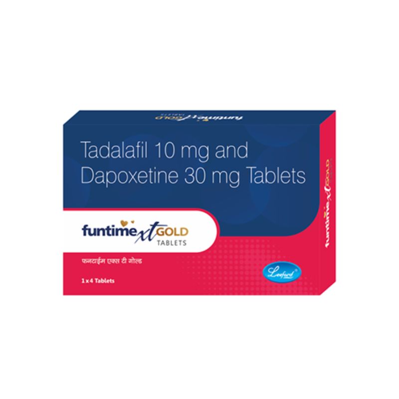 FUNTIME XT GOLD is a dual-action tablet containing tadalafil for erectile dysfunction (ED) and dapoxetine for premature ejaculation (PE). This combination is designed for men who require both erection support and improved ejaculatory control.