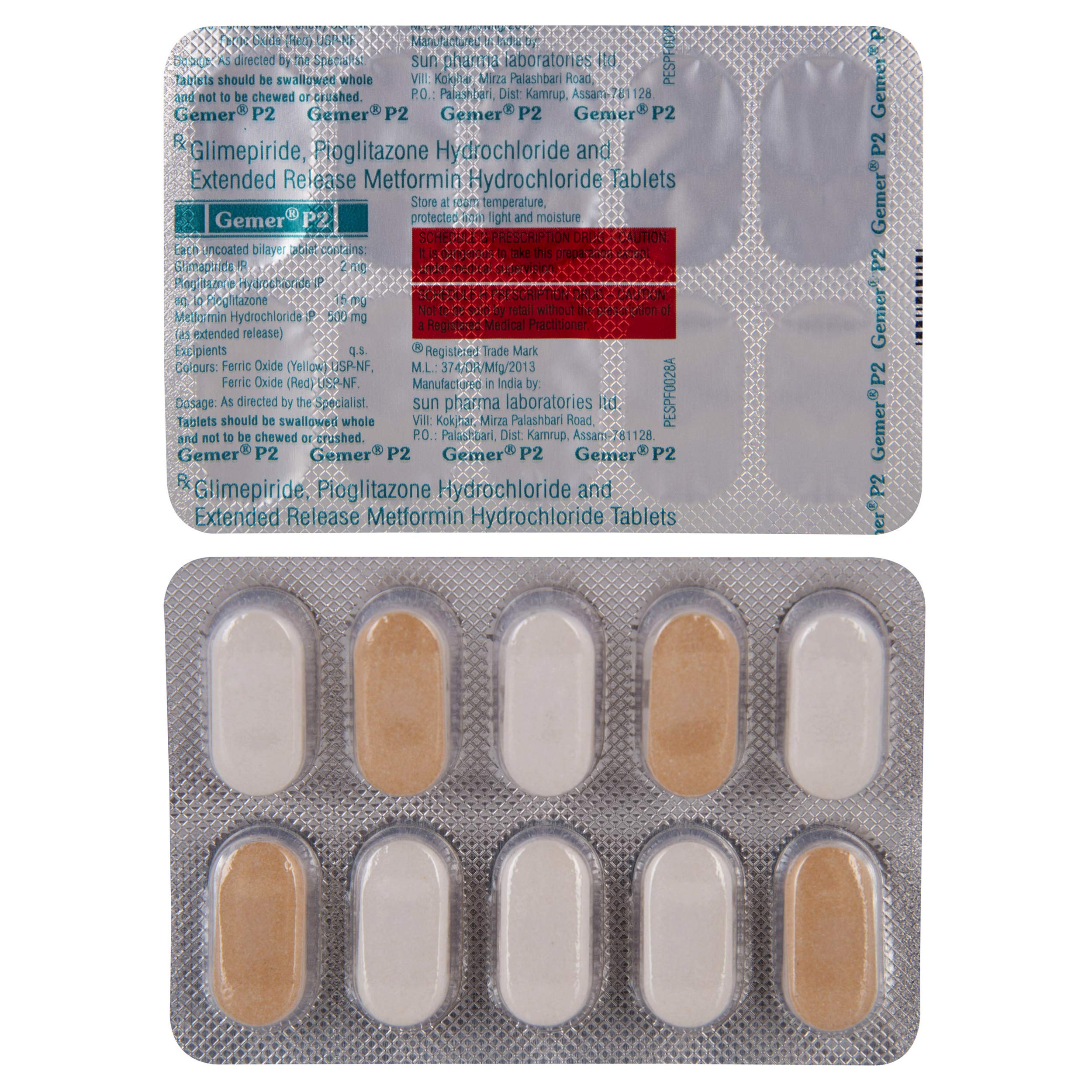 Gemer P 2 Tablet ER is a prescription anti-diabetic medication that combines three active ingredients: