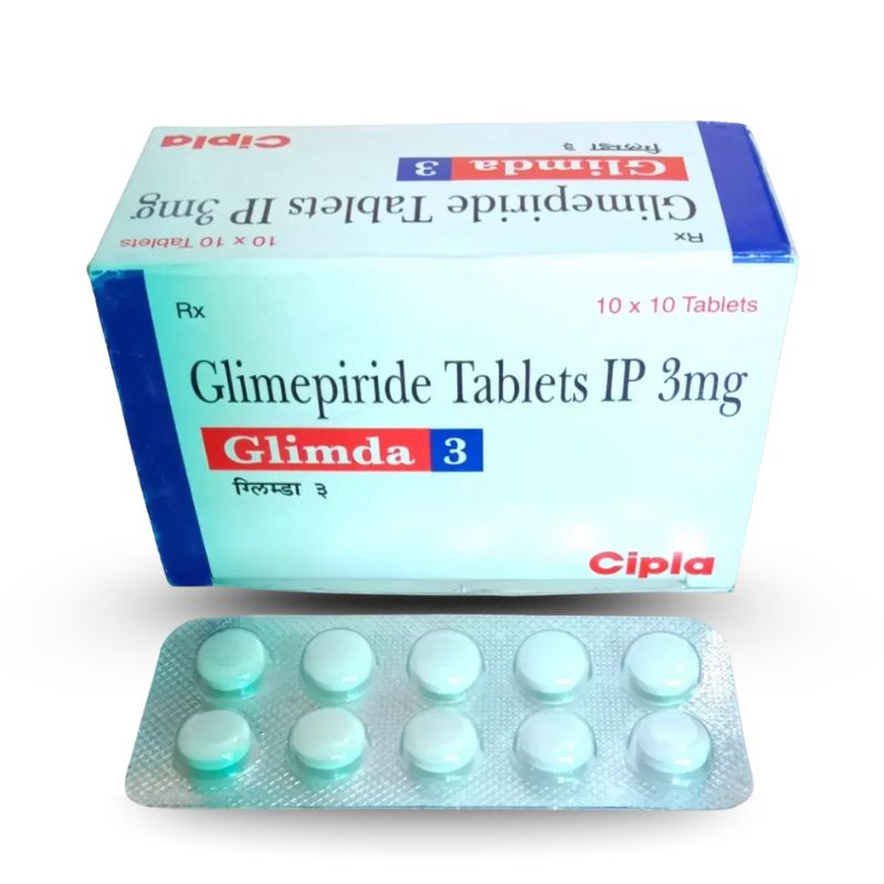 Glimda 3 Tablet is an oral anti-diabetic medicine manufactured by Cipla Ltd, containing Glimepiride 3mg as its active ingredient. It belongs to the sulfonylurea class of drugs and is primarily used for the management of type 2 diabetes mellitus in adults, particularly when lifestyle changes (diet and exercise) alone are inadequate for blood sugar control.