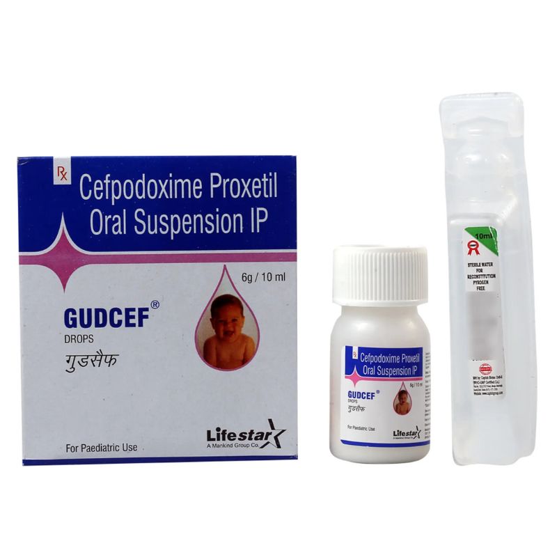 Gudcef Oral Drops Mango contain Cefpodoxime Proxetil (25mg), a cephalosporin antibiotic used to treat bacterial infections in infants and young children. It works by stopping the growth of bacteria, helping to treat infections of the ears, throat, lungs, urinary tract, and skin. The mango flavor makes it more palatable for children.