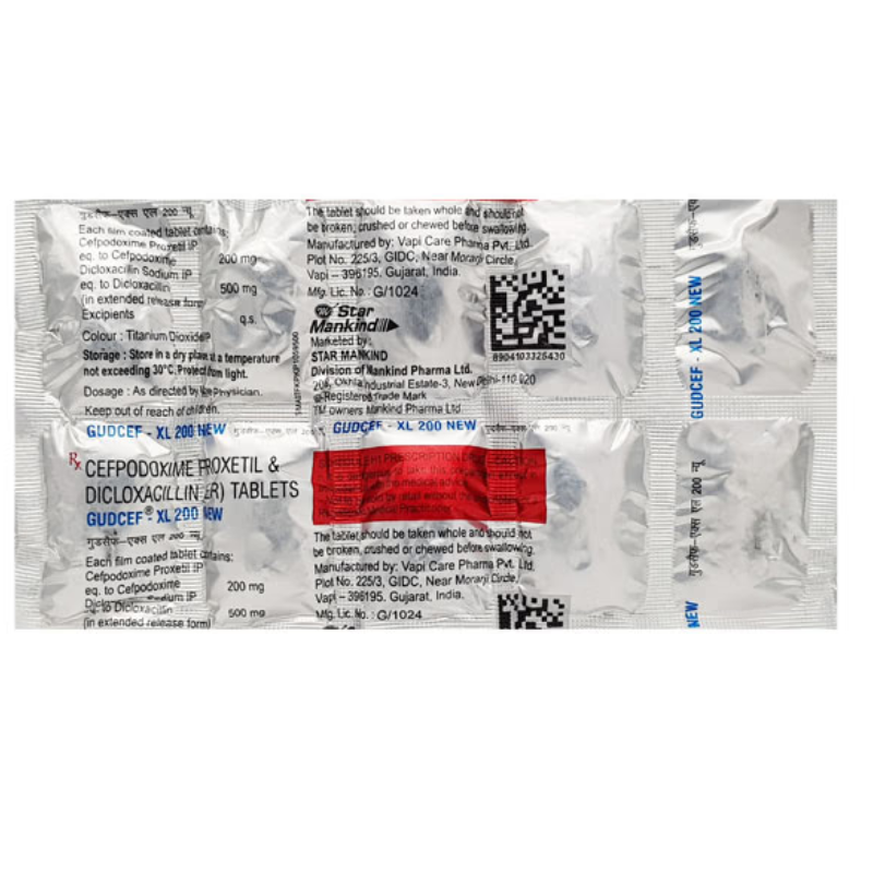 Gudcef XL Tablet is a combination antibiotic that contains Cefpodoxime Proxetil, Cloxacillin, and Lactobacillus. Cefpodoxime and Cloxacillin are broad-spectrum antibiotics that work together to kill different types of bacteria, while Lactobacillus (a probiotic) helps maintain healthy gut flora and reduces antibiotic-associated diarrhea. It is used to treat mixed bacterial infections of the respiratory tract, skin, urinary tract, and other parts of the body.