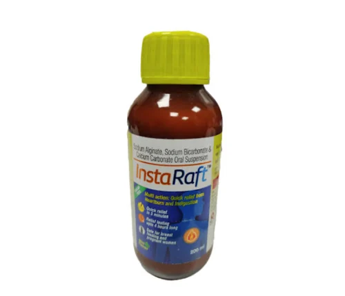 Insta Raft Oral Suspension is used for the treatment of acid reflux, heartburn, indigestion, and gastroesophageal reflux disease (GERD). It works by forming a protective layer on top of stomach contents, preventing acid from rising into the food pipe and relieving discomfort.