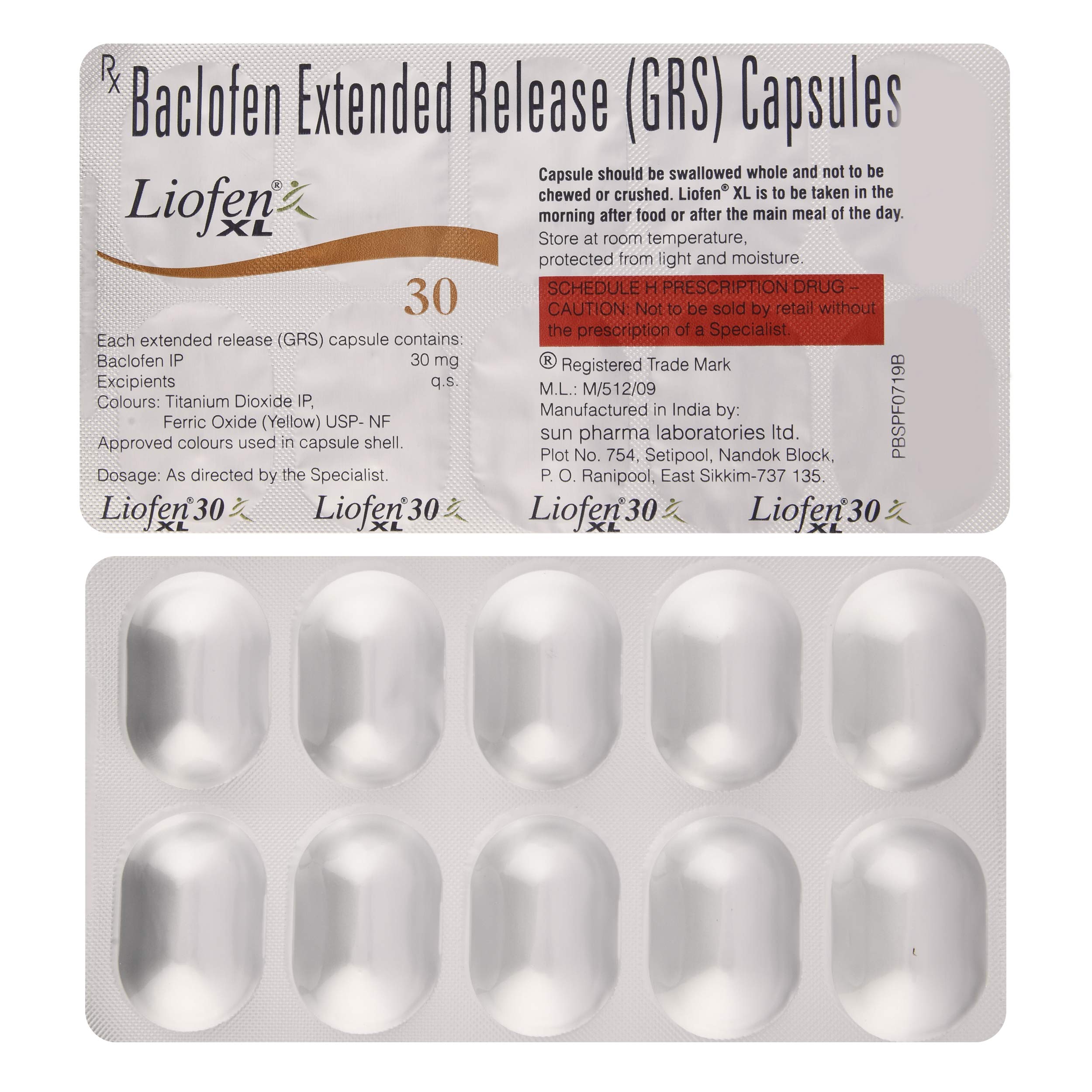 Liofen XL 30 Capsule is used to relieve muscle spasms, stiffness, and pain caused by conditions such as multiple sclerosis, spinal cord injuries, or other neurological disorders. It works as a muscle relaxant by acting on the central nervous system.