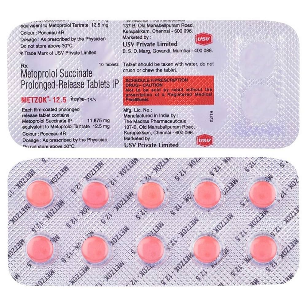Metzok 12.5 Tablet contains Metoprolol Succinate, a selective beta-1 adrenergic receptor blocker. It is used for mild hypertension, angina, and early-stage heart conditions. It helps reduce cardiac workload and oxygen demand, supporting overall heart health.