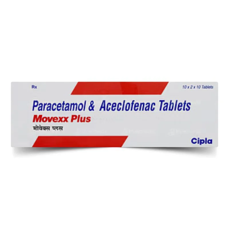 Movexx Plus Tablet is a combination medicine that contains Aceclofenac (NSAID) and Paracetamol (analgesic/antipyretic). It is commonly prescribed for the treatment of pain, inflammation, and fever associated with various musculoskeletal and joint conditions.