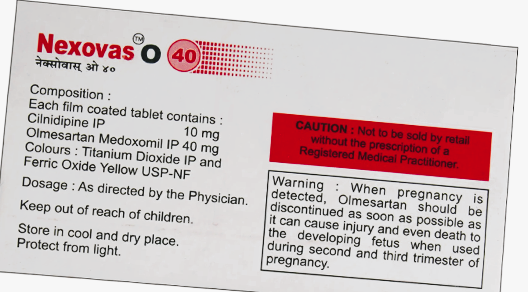 Nexovas O Tablet is a combination medicine used for the treatment of high blood pressure (hypertension). It contains Olmesartan Medoxomil (an angiotensin receptor blocker – ARB) and Cilnidipine (a calcium channel blocker – CCB). Together, these medicines work by relaxing blood vessels and improving blood flow, which lowers blood pressure and reduces the strain on the heart. This helps to lower the risk of heart attack, stroke, and kidney problems.