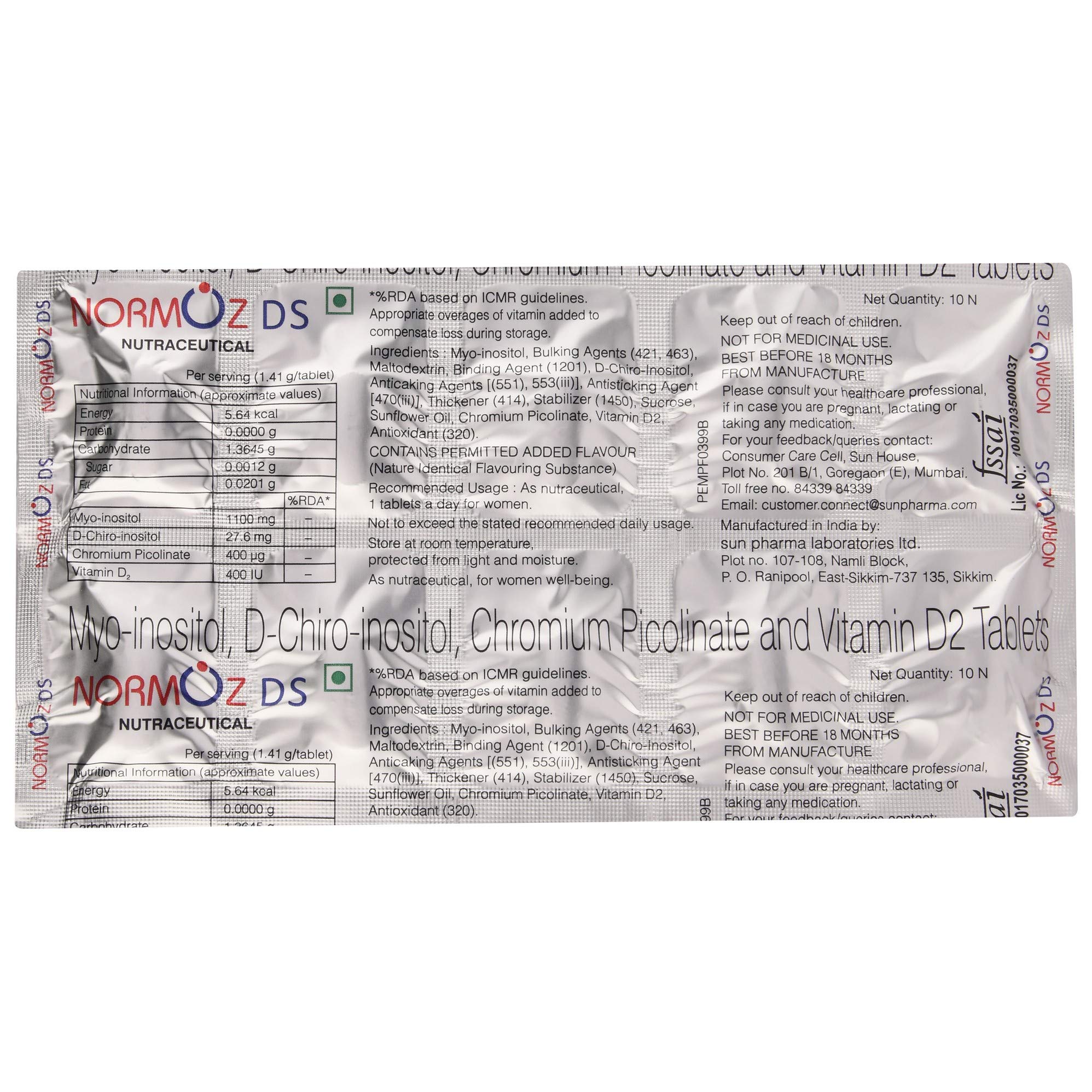Normoz DS Tablet is a prescription supplement designed to support hormonal balance, insulin sensitivity, and reproductive health, particularly in women with metabolic or endocrine disorders. It combines Myo-Inositol, D-Chiro-Inositol, Chromium, and Vitamin D2 to enhance metabolic and hormonal function.