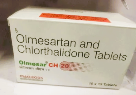 Olmesar CH 20 Tablet is a combination medicine used for the treatment of hypertension (high blood pressure). It contains Olmesartan Medoxomil (20mg), an angiotensin receptor blocker (ARB), and Chlorthalidone (12.5mg), a diuretic (water pill). Together, they help lower blood pressure by relaxing blood vessels and increasing urine output, which reduces excess fluid and strain on the heart. Controlling blood pressure helps prevent heart attack, stroke, and kidney damage in the long run.