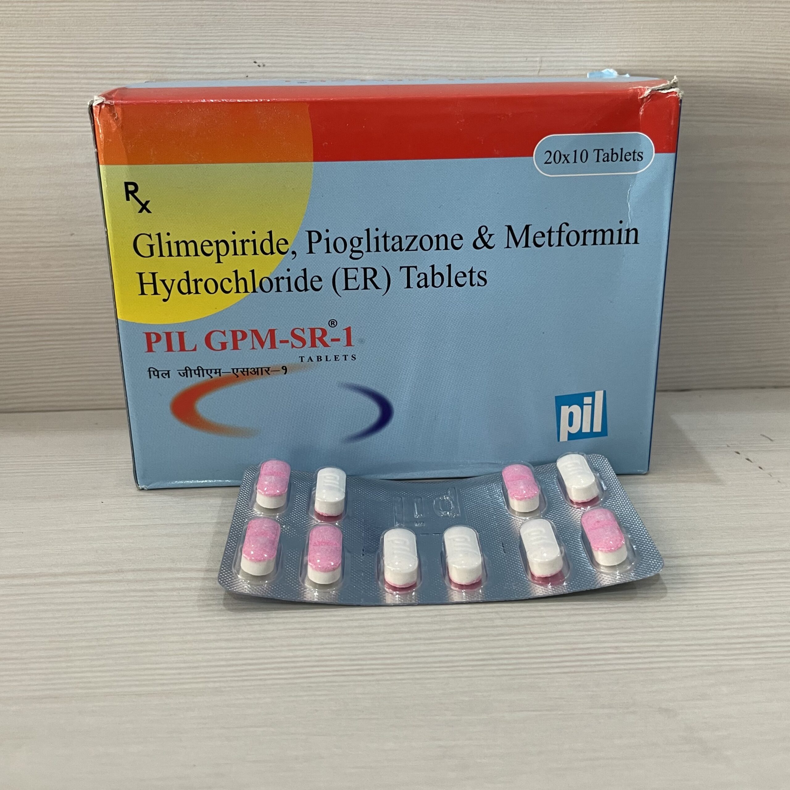 Pil GPM-SR 1 Tablet is an oral antidiabetic medicine used for the effective management of Type 2 Diabetes Mellitus. It contains a triple combination of Glimepiride, Metformin, and Pioglitazone, which work together to control high blood sugar levels. Glimepiride increases insulin secretion from the pancreas, Metformin decreases glucose production in the liver and enhances insulin sensitivity, while Pioglitazone helps the body utilize insulin efficiently. Together, they help maintain stable blood glucose levels and lower the risk of diabetes-related complications.