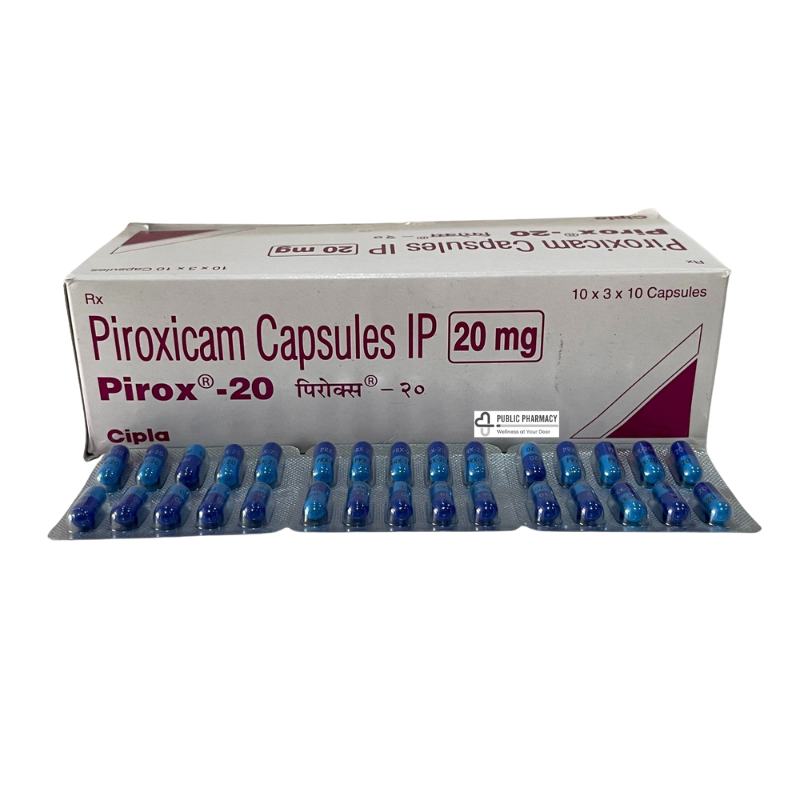 Pirox 20 Capsule is a non-steroidal anti-inflammatory drug (NSAID) manufactured by Cipla Ltd. It contains Piroxicam (20mg), which works by inhibiting prostaglandin synthesis – the chemical messengers responsible for pain, swelling, and fever. It provides effective relief from various musculoskeletal and joint-related conditions, offering both anti-inflammatory and analgesic effects.