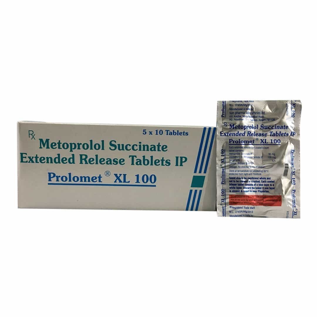 Prolomet XL 100 Tablet contains Metoprolol Succinate (95mg), a beta-blocker used to treat high blood pressure (hypertension), chest pain (angina), and heart-related disorders. It works by slowing down the heart rate and relaxing blood vessels, thereby improving blood flow and reducing strain on the heart. This medicine also lowers the risk of heart attack, stroke, and heart failure complications.