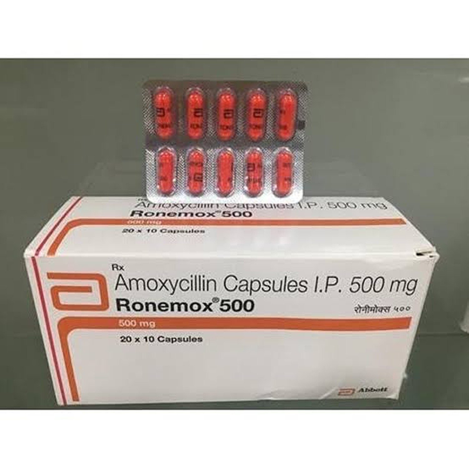 Ronemox 500mg Capsule is an antibiotic medicine used to treat a variety of bacterial infections in the respiratory tract, urinary tract, ear, nose, throat, skin, and soft tissues. It contains Amoxycillin (500mg), a broad-spectrum penicillin-type antibiotic that works by preventing the formation of bacterial cell walls, thereby stopping bacterial growth and multiplication. It is commonly prescribed for infections such as tonsillitis, bronchitis, pneumonia, urinary tract infections, and skin infections.