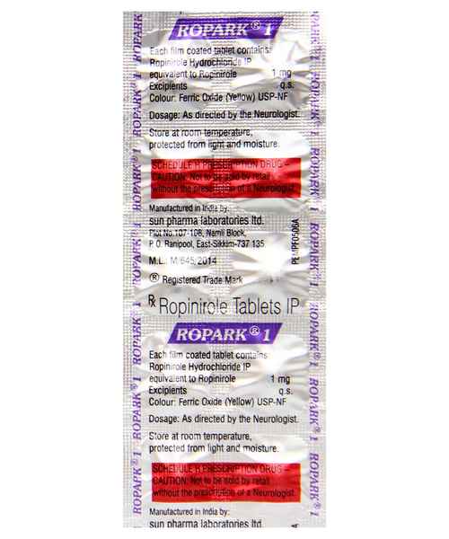 Ropark 1 Tablet contains Ropinirole (1mg), a dopamine agonist used for the treatment of Parkinson’s disease and Restless Legs Syndrome (RLS). It works by stimulating dopamine receptors in the brain, helping improve movement, coordination, and muscle control in patients with Parkinson’s disease.