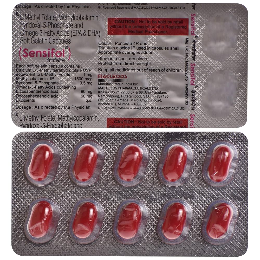 Sensifol Soft Gelatin Capsule is a nutritional supplement combining Omega-3 fatty acids, folate, vitamin B12, and vitamin B6 in a single formulation. It is designed to support neurological health, cardiovascular function, and fetal development during pregnancy.