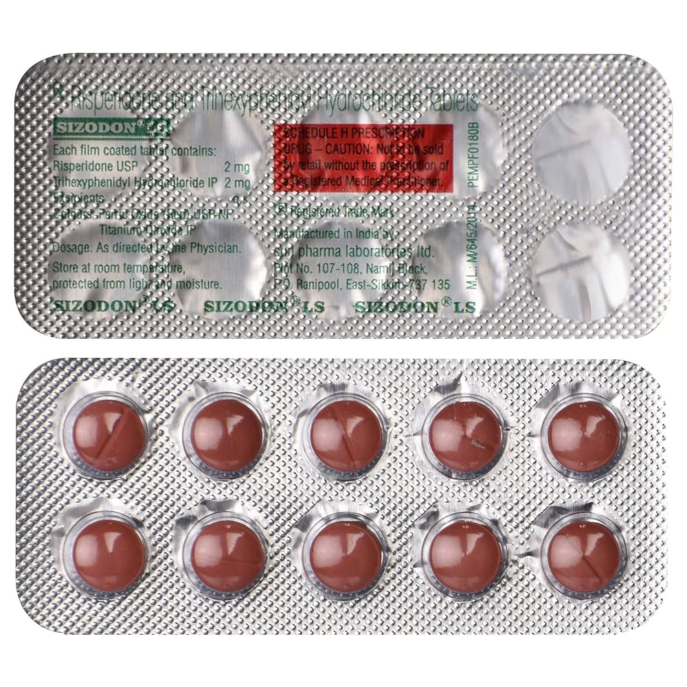 SizoDON LS Tablet is a combination antipsychotic medication used to treat schizophrenia, bipolar disorder, and to manage movement side effects caused by antipsychotic therapy. Risperidone helps balance neurotransmitters in the brain to improve mood, behavior, and thinking, while Trihexyphenidyl reduces involuntary muscle movements (extrapyramidal symptoms).