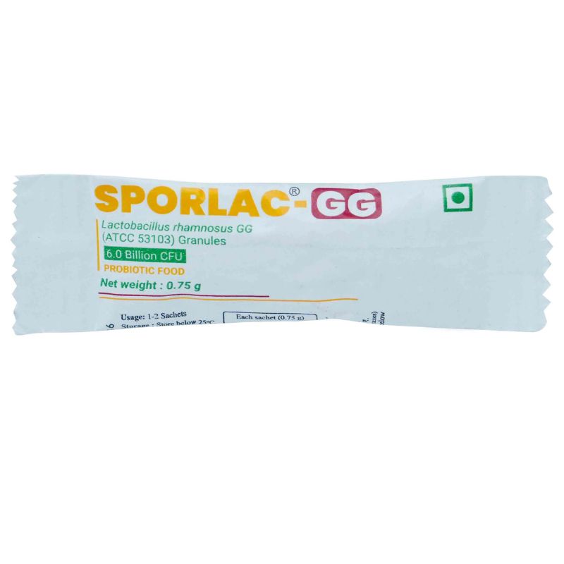 Sporlac GG Granules is a probiotic formulation containing Lactobacillus rhamnosus GG, one of the most clinically proven probiotic strains for digestive and immune health. It is gluten-free, lactose-free, and sugar-free, making it suitable for people with dietary restrictions, lactose intolerance, or diabetes.