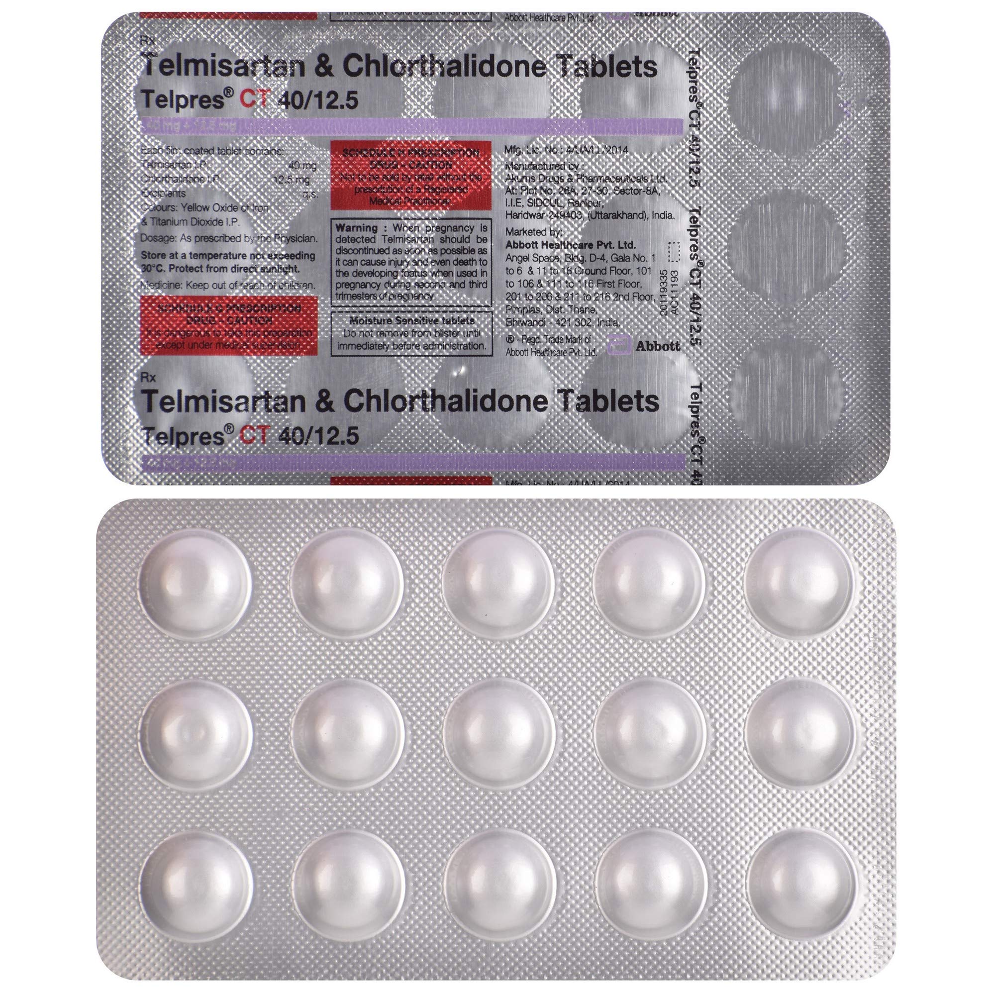 Salt Composition: Telmisartan (40mg) + Chlorthalidone (12.5mg)