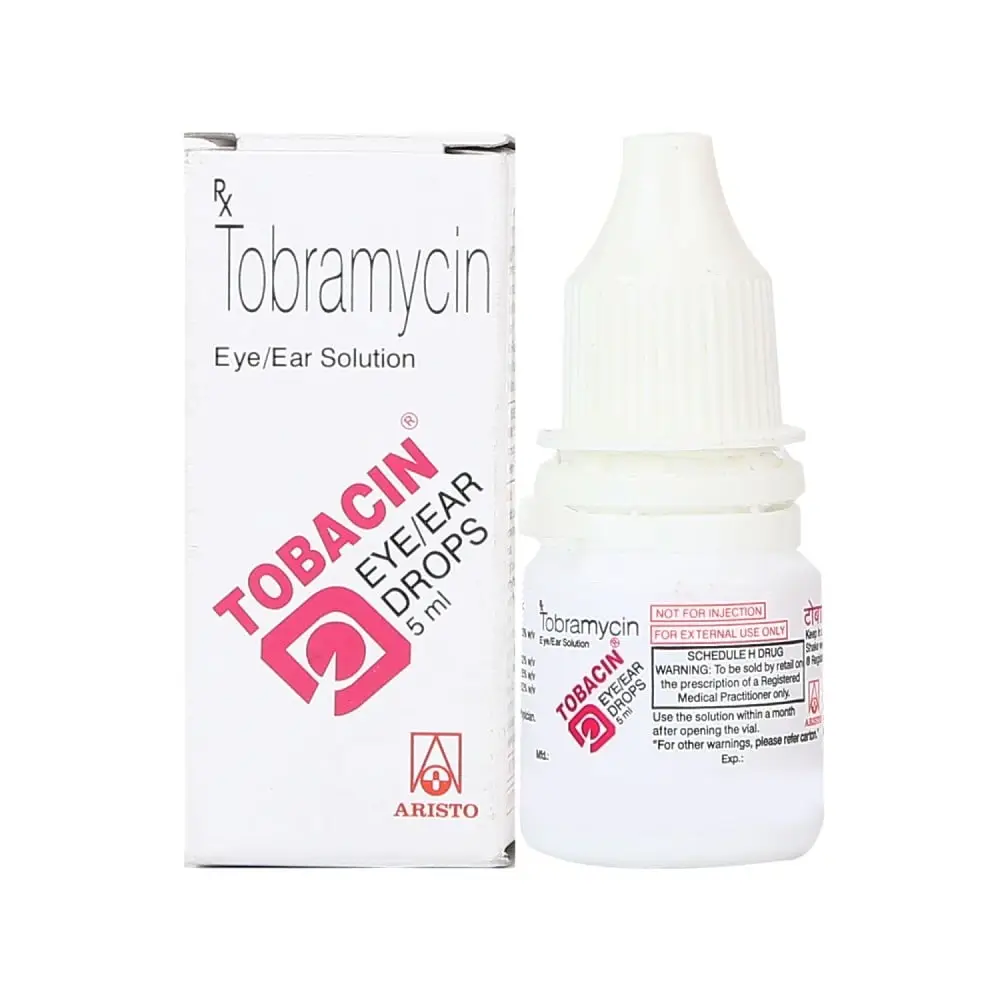 Tobacin Eye/Ear Drops contain Tobramycin, an aminoglycoside antibiotic used to treat bacterial infections of the eye or ear. It works by inhibiting the growth of susceptible bacteria, helping to clear infections and reduce inflammation.