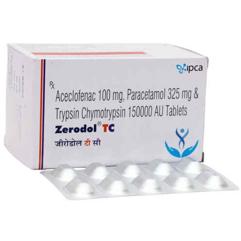 Zerodol-TC Tablet is a combination medicine used for the management of pain, inflammation, and swelling caused by muscle injuries, joint disorders, dental procedures, or post-surgical recovery. It contains Aceclofenac and Paracetamol for pain relief, along with Trypsin Chymotrypsin, an enzyme that helps reduce tissue swelling and promotes faster healing.